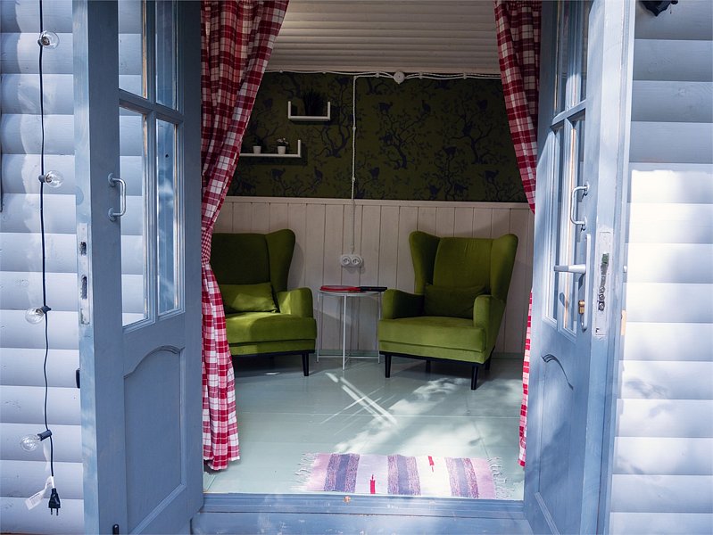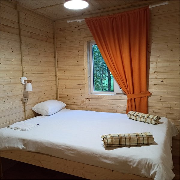 В уютном кафе гостей ждут вкусные домашние блюда из свежих фермерских продуктов собственного производства. Каждый домик оборудован индивидуальным мангалом, а для больших компаний предусмотрена общая зона для барбекю. На территории глэмпинга расположена мини-ферма, где под присмотром ответственного персонала можно познакомиться с животными, погладить и угостить их лакомствами. Для активного отдыха гостей доступны батут, волейбольная площадка, настольный теннис, прокат велосипедов и лыж.