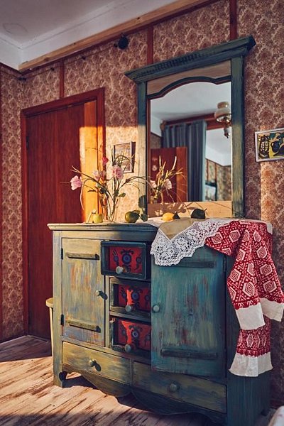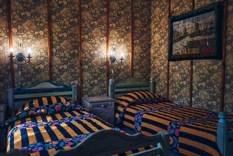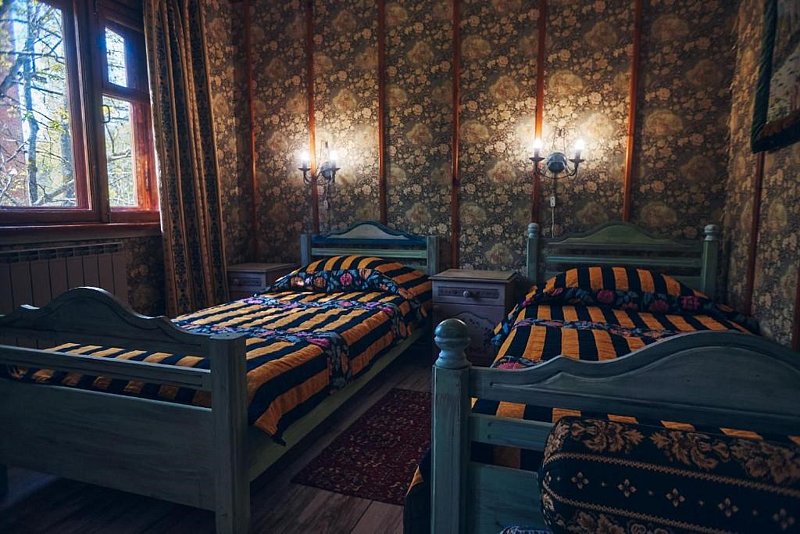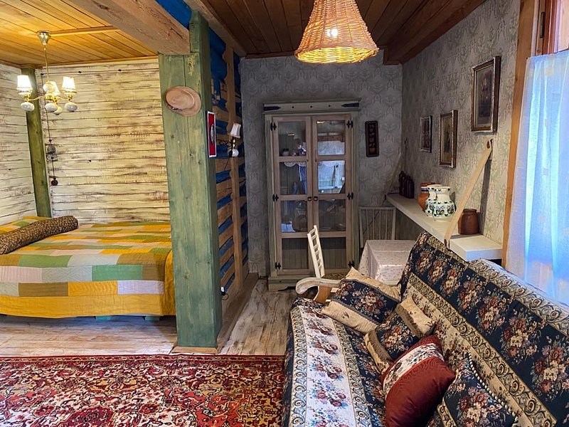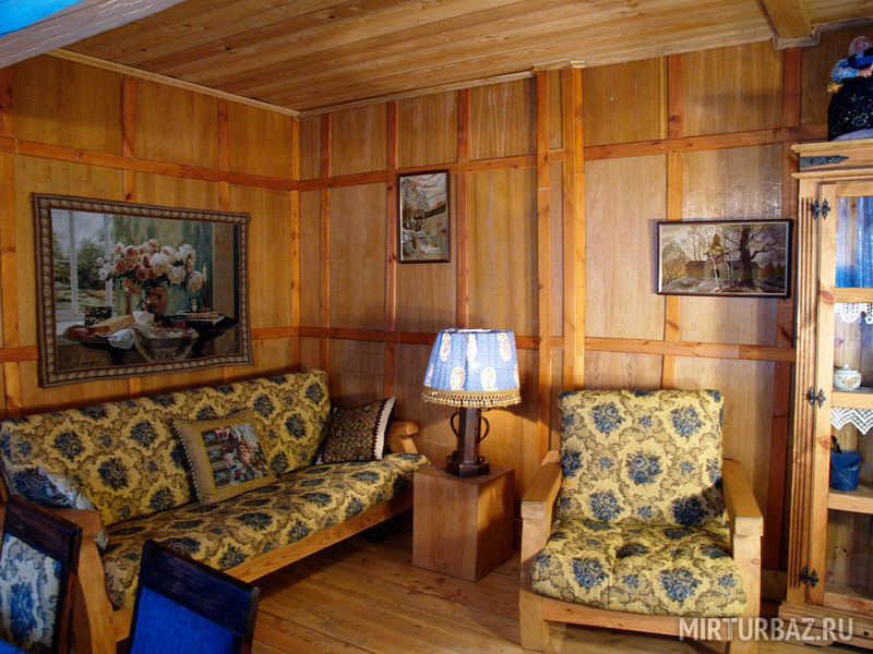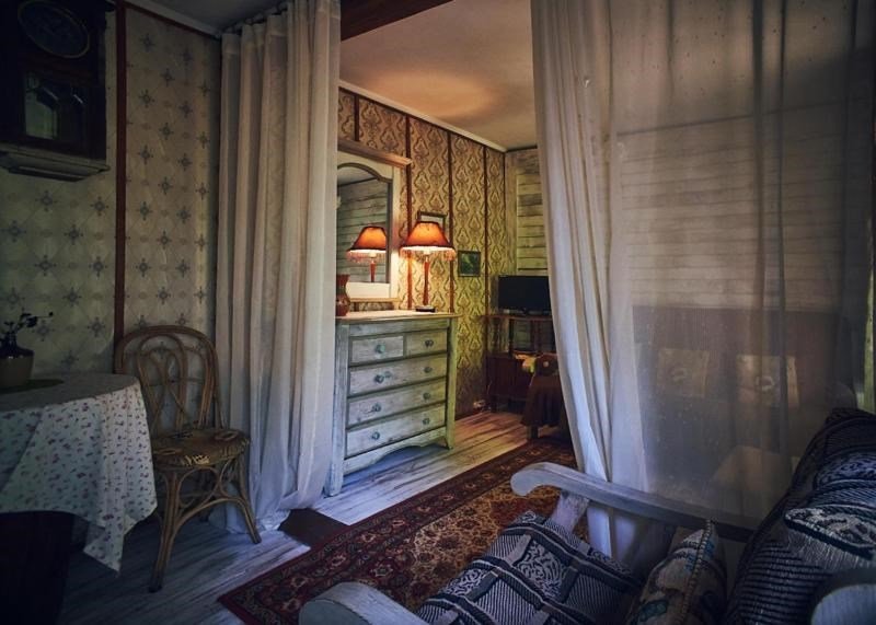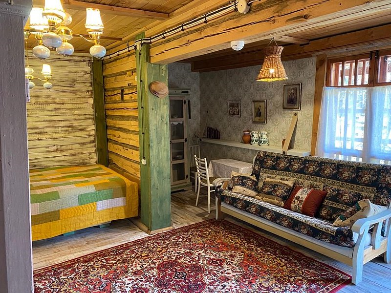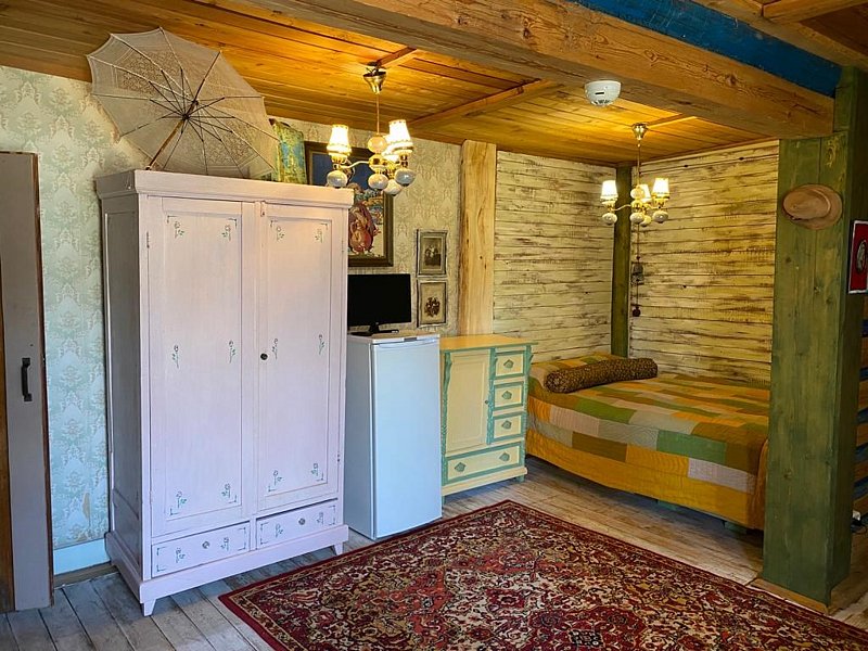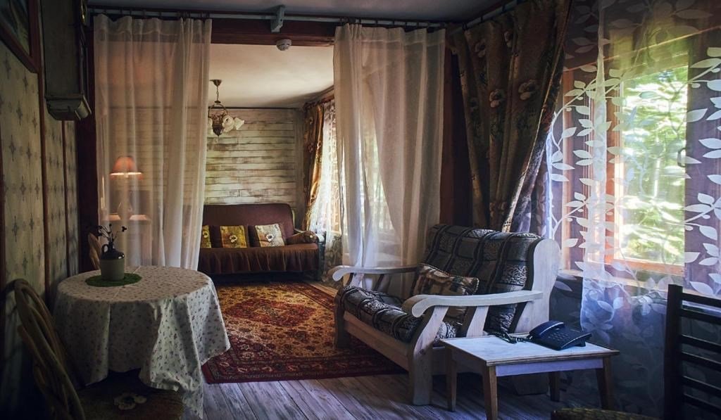 Деревянный дом-дача 52 года прошлого века на 10 номеров абсолютно различных планировок (двухуровневые, с террасой, с отдельным входом, двухкомнатные, мансарды). Дом был отреставрирован с сохранением всей столярки (полы, стены, двери), каждый номер оформлен в стиле времён Антона Павловича Чехова, который жил, работал и творил именно в этих местах.